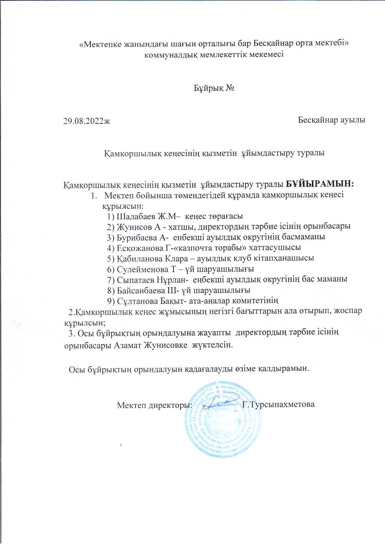 Бұйрық 2021-2022 оқу жылы » Жетісу облысы Көксу ауданы Бесқайнар орта мектебі