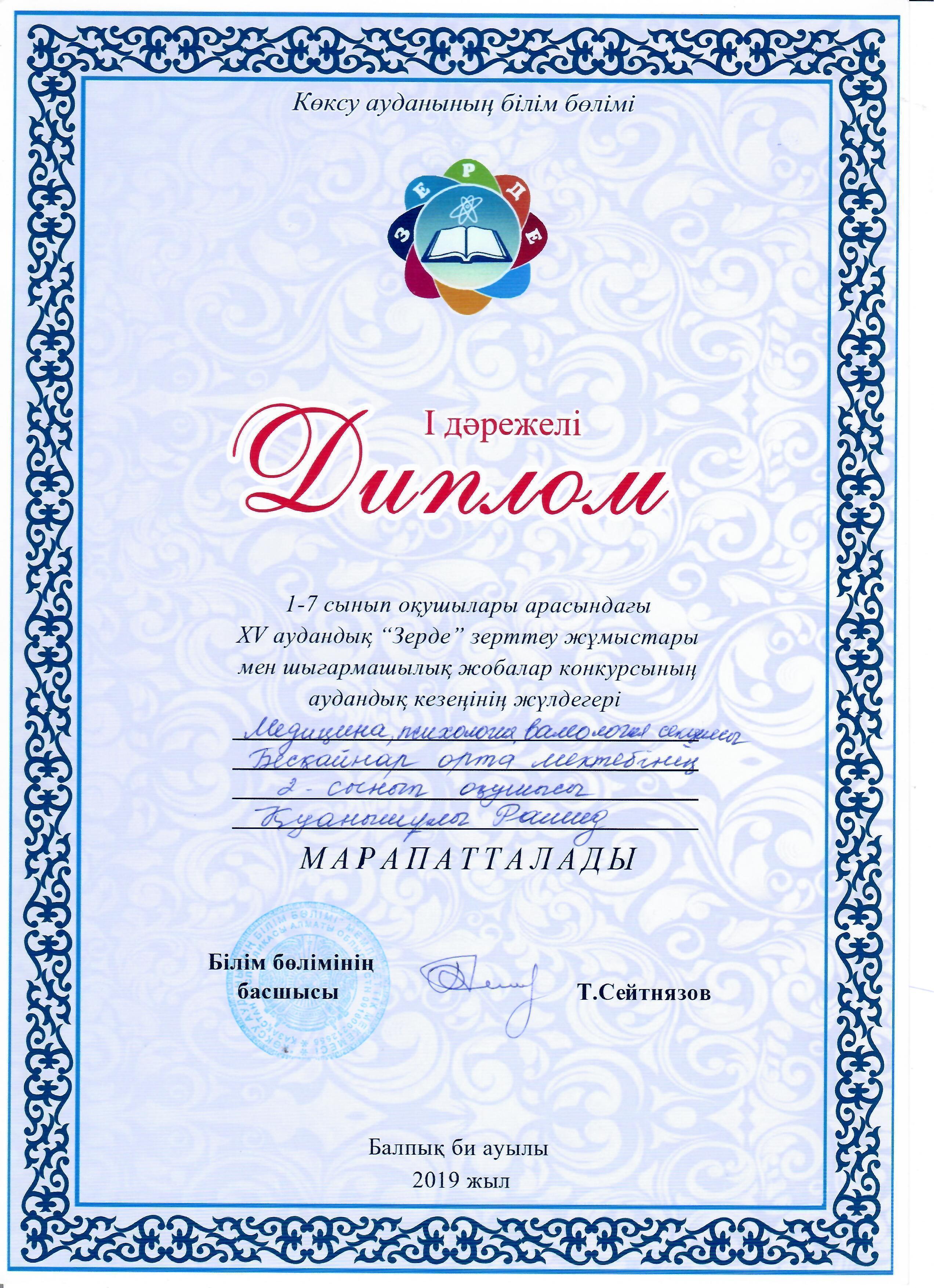 "Зерде" жобасы » Жетісу облысы Көксу ауданы Бесқайнар орта мектебі