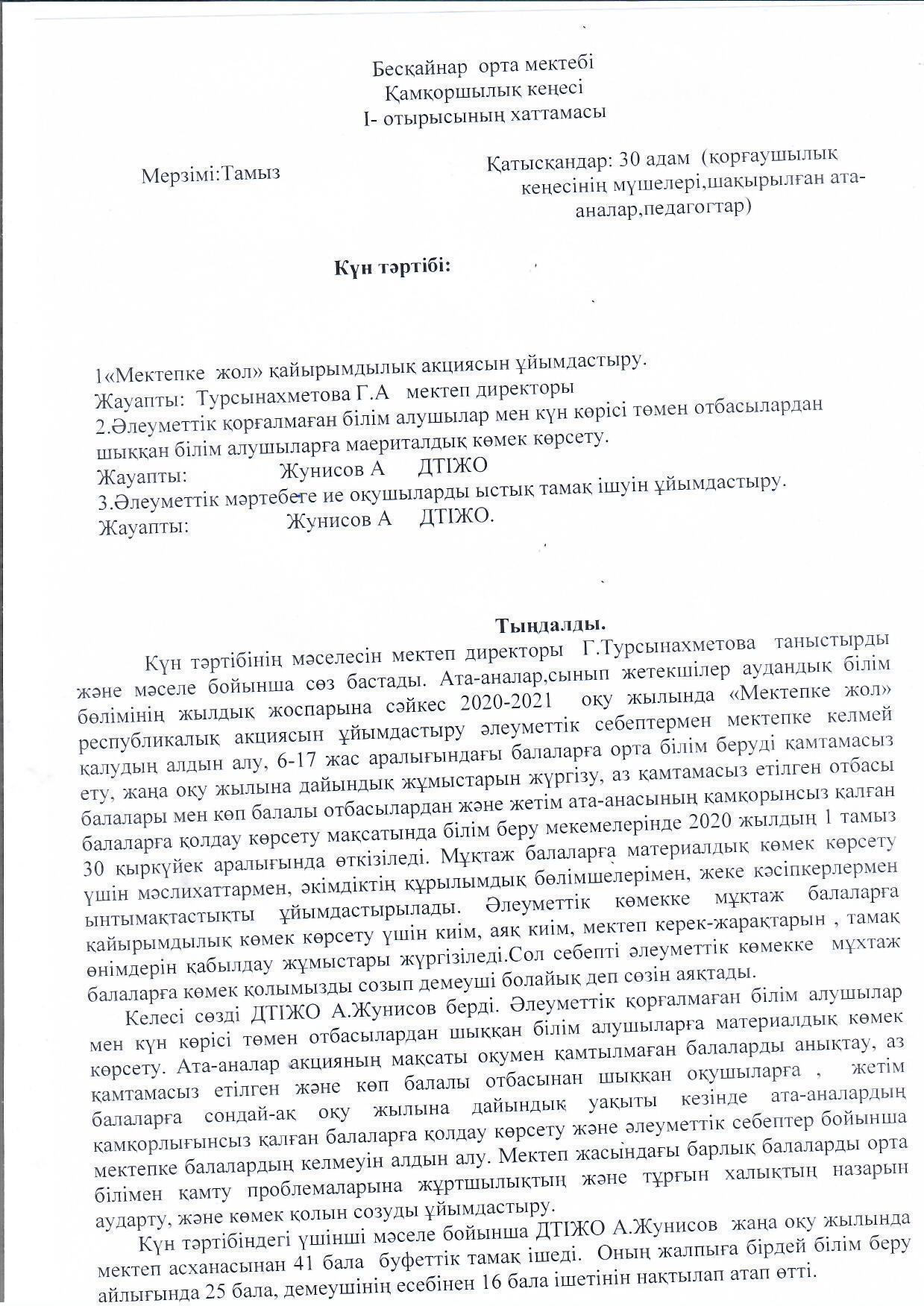 Хаттама 1.2. » Жетісу облысы Көксу ауданы Бесқайнар орта мектебі
