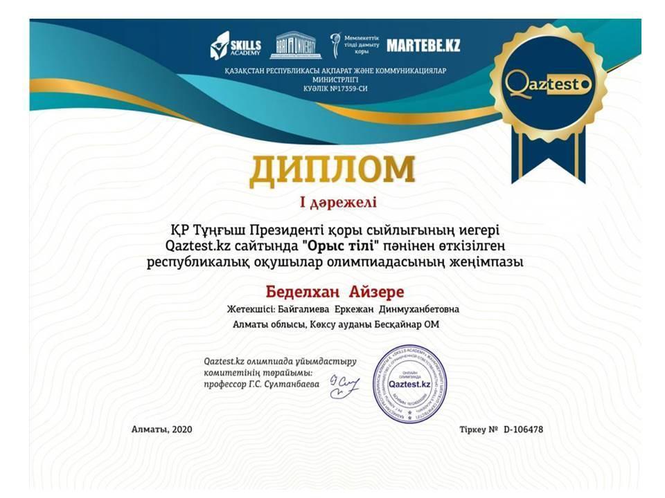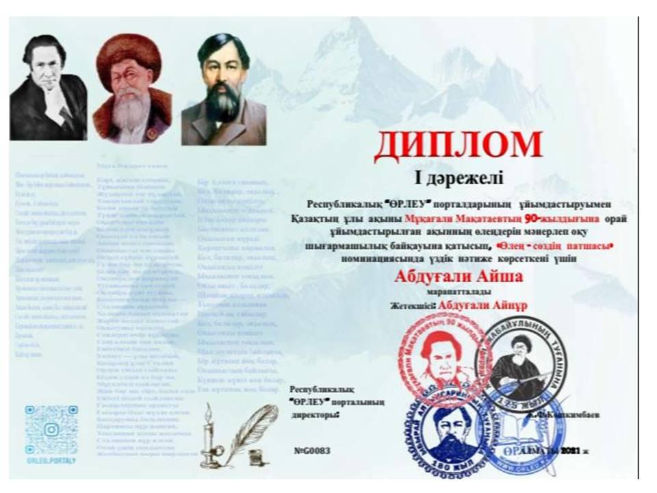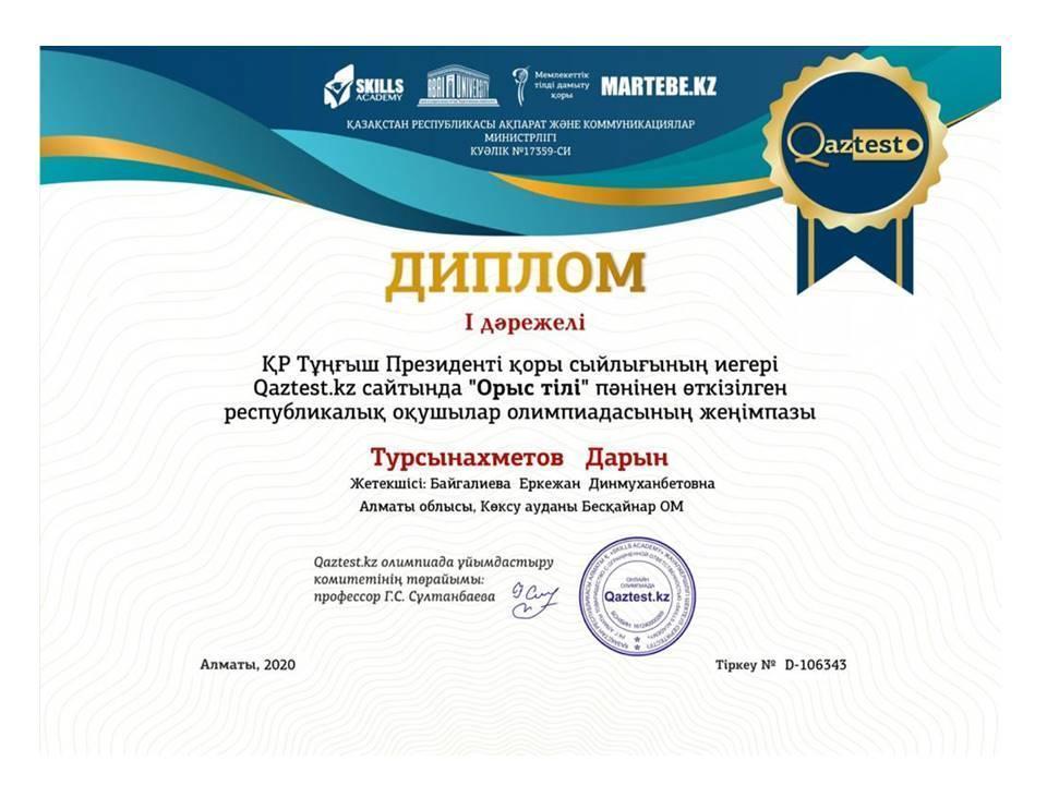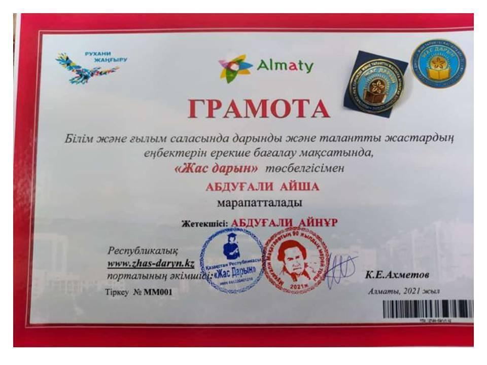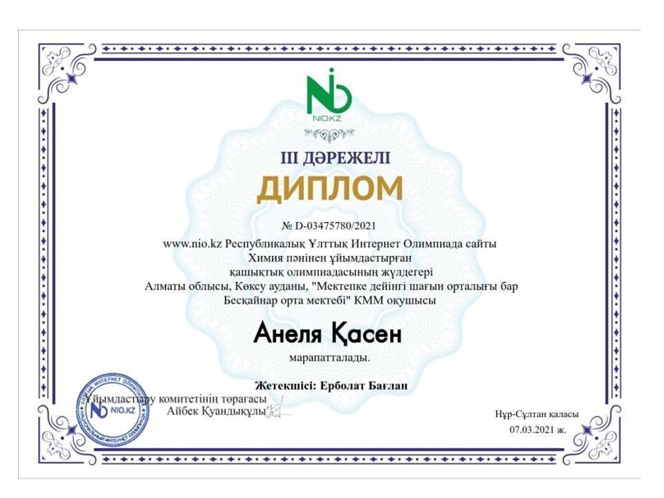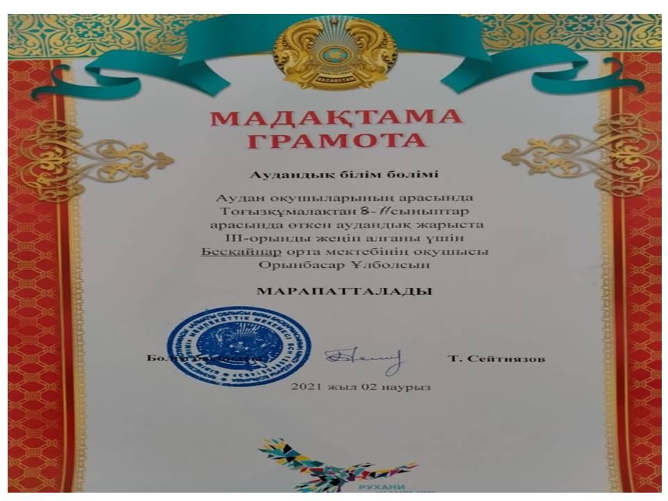 Оқушылардың жетістіктері » Жетісу облысы Көксу ауданы Бесқайнар орта мектебі