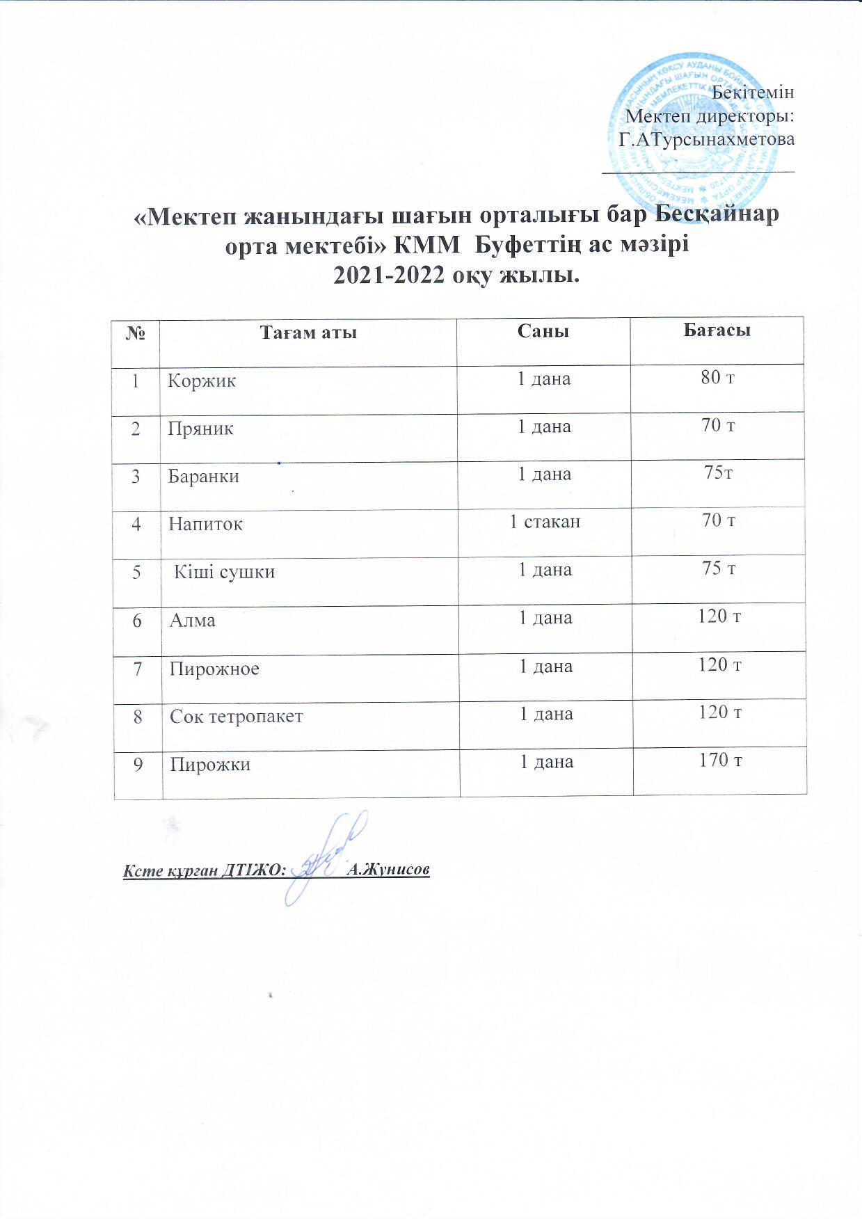 Тамақтың менюі » Жетісу облысы Көксу ауданы Бесқайнар орта мектебі